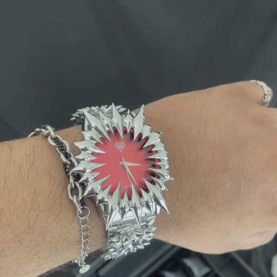 This is not a timepiece. It is a primal scream cast in steel. The "Rage" is a monument to pure, untamed emotion, a moment of beautiful destruction frozen in time. The spikes are not an elegant crown; they are shrapnel, a furious eruption captured mid-explosion. There is no subtlety here, no quiet suggestion—only the loud, unapologetic declaration of raw power.